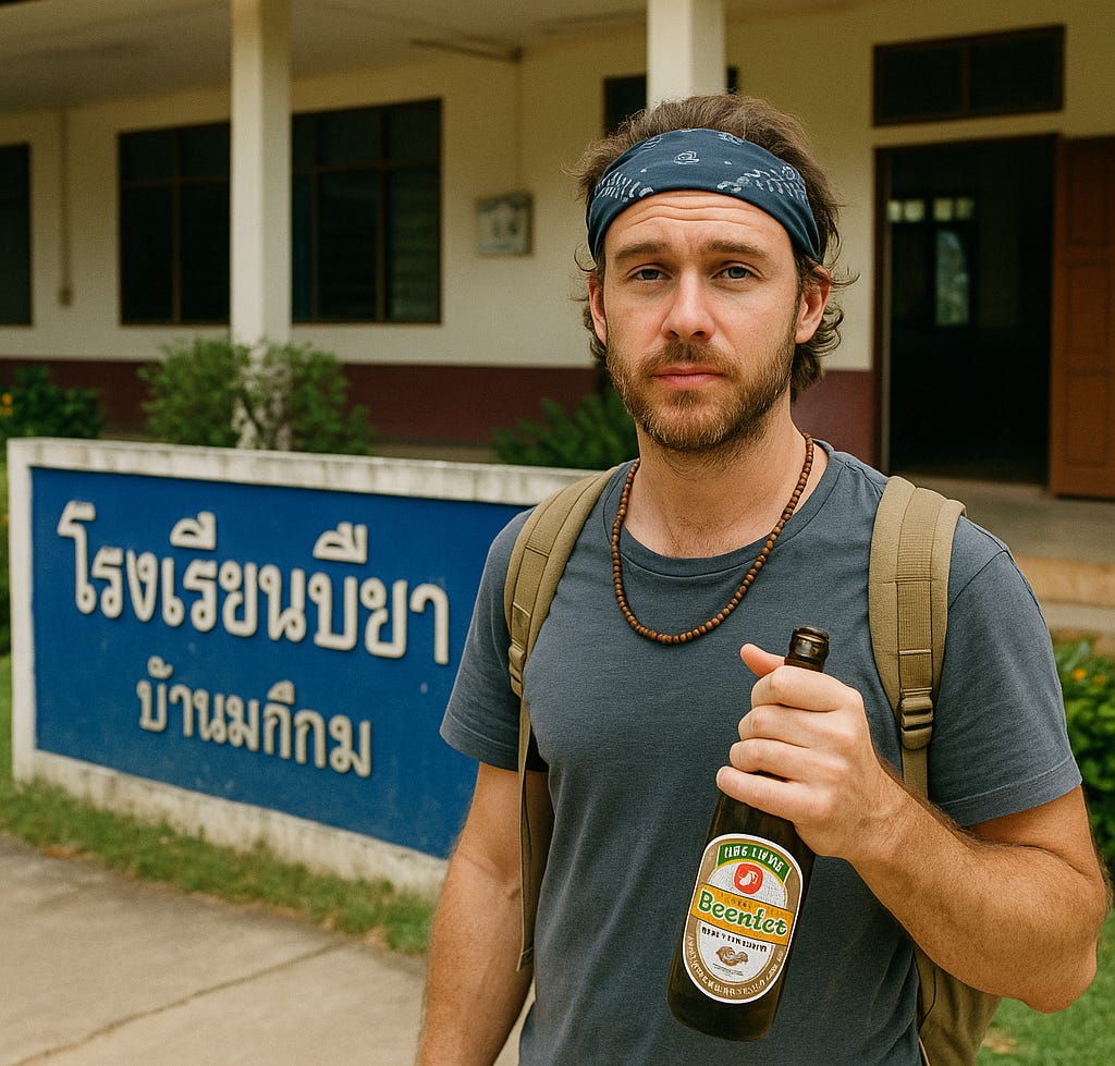 The school that hired him — reluctantly, and only after the previous teacher left to join a cult in Udon Thani — reportedly pays him in cash and rice, and has requested multiple times that he stop trying to explain Brexit to 10-year-olds.