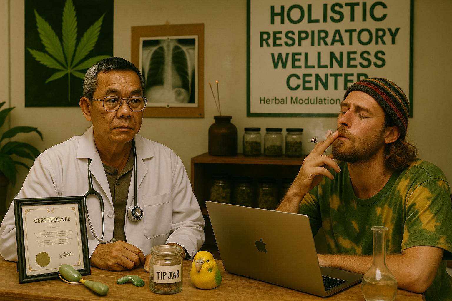 In a country where most farang stoners can’t spell “prescription,” this is expected to create a sudden demand for anyone with a framed certificate and a pulse.